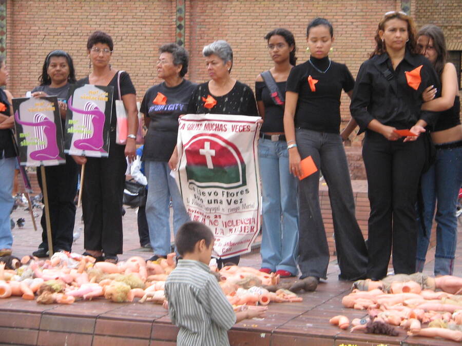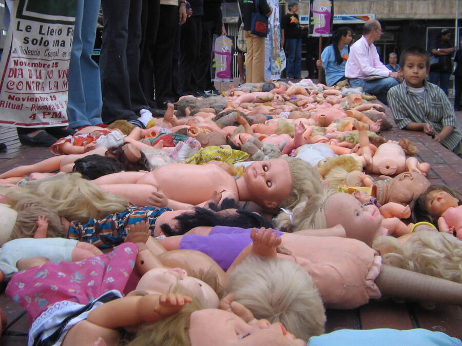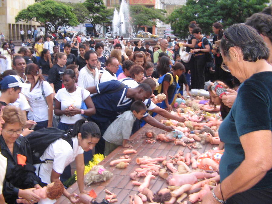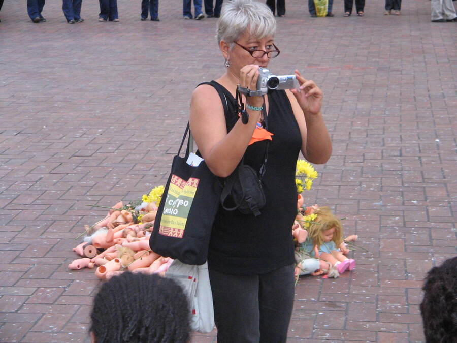 Registro visual de la movilización y acción simbólica “Muñecas Rotas”, documentando expresiones de denuncia frente a las violencias contra las mujeres, así como la participación colectiva y el impacto en el espacio público.