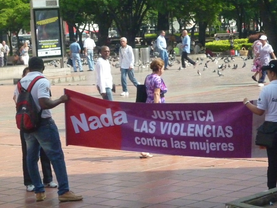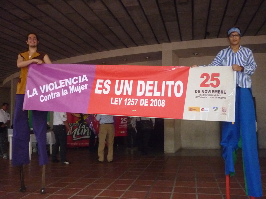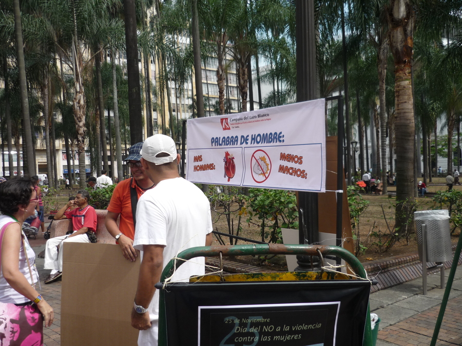 Documentación fotográfica de la jornada conmemorativa por la no violencia contra las mujeres, evidenciando actos simbólicos, actividades públicas y participación ciudadana.